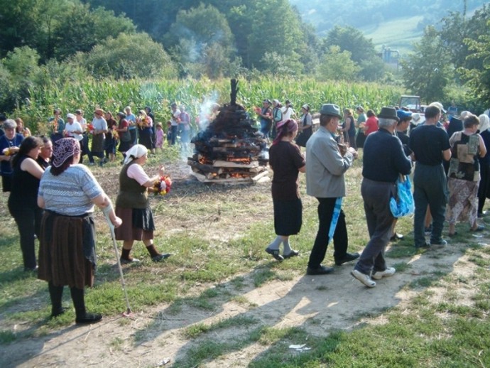 Паун Ес Дурлић, Биљана Бојковић, ВЛАШКА МИТОЛОШКА ПЕСМА О ПОРЕКЛУ ЗЛА, ИЗ РАШАНЦА НА МЛАВИ, "Развитак", број 221-222, Зајечар 2005, стр. 141 Сл. 4 – Песму о покојнику, смишљену на самој помани, лаптари изводе у разним моментима током њеног трајања. На слици лаптари свирају арију песме током трократног опхода око „привега” који је упаљен у дворишту Јане Петковић у Осаници, да би огрејао њеног покојног мужа.