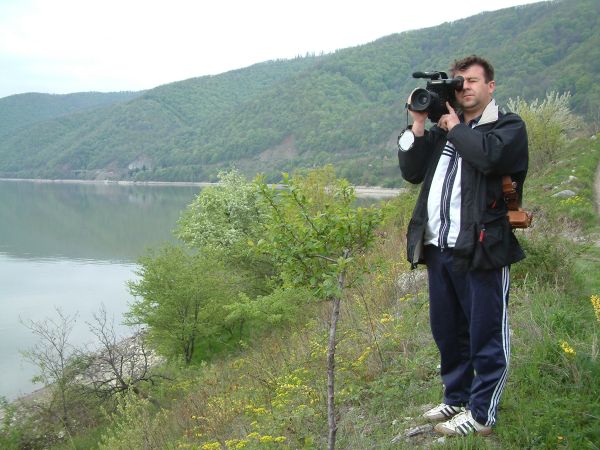 Медијатекар Музеја Мирослав Балабановић, испод куће налазача предмета са Власца, рибара Момчила Ђорђевића, прави увод у репортажу о рекогносцирању. Снимио Боривоје Крчмаревић.