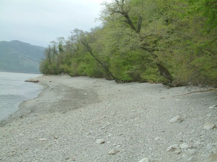Тераса Власца, поглед низводно. Откривени део потопљеног археолошког локалитета на коме су нађе предмети. Снимио Б. Крчмаревић.
