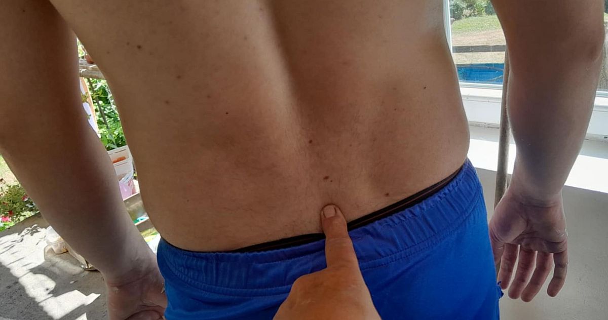 ![]() Klikni na sliku za povećanje! Click to image for big foto! | Źeĭśtu arată luoku unđe ĭe la uom kiśu. — Prst pokazuje mesto gde su kod čoveka krsta.Foto: Durlilć. |